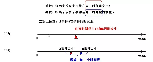 并发和并行是两个非常容易被混淆的概念。他们都可以表示两个或者多个任务一起执行,但是侧重点有所不同。并发偏重于多个任务交替执行,而多个任务之间有可能还是串行的,而并行是真正意义上的“同时执行”,如下图: